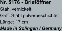 • Brieföffnerklingen